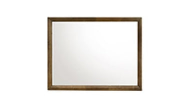 This walnut-framed mirror features a minimalist aesthetic that enhances any bedroom environment. The natural grain and warm finish of the walnut wood create a sophisticated focal point while maintaining visual harmony with coordinating bedroom furniture. Designed to complement the matching dresser within the bedroom collection, this mirror combines functional clarity with refined style.