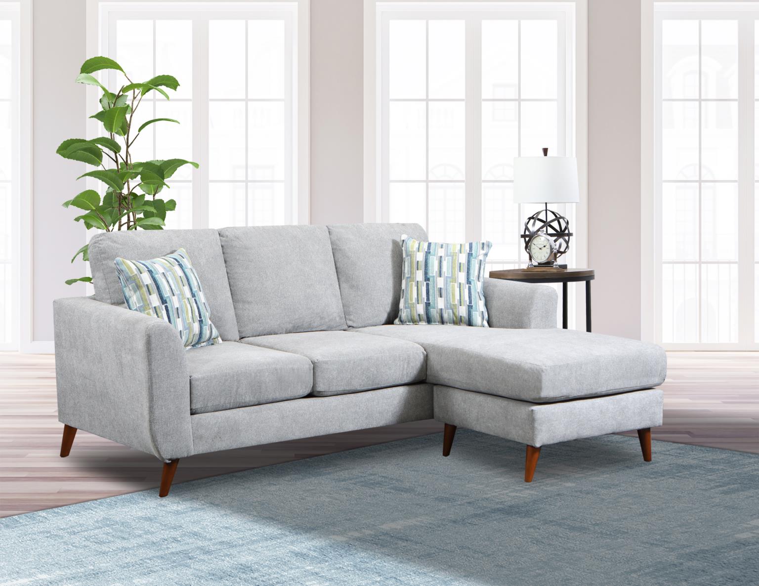 This compact sectional with reversible chaise is a great addition to any room with limited space. Plush material and contemporary pillows enhance the appeal at an exceptional price.